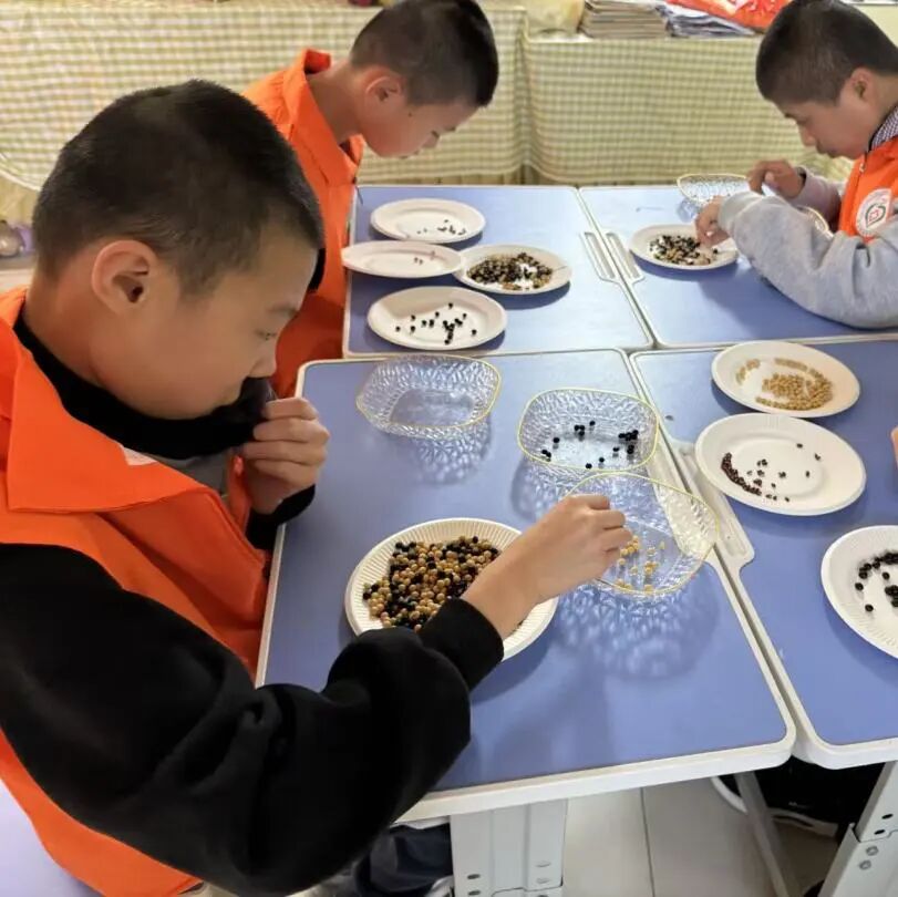 延伸技能區(qū)分紅豆、黃豆、黑豆。