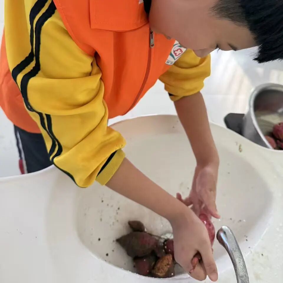 對于孩子們來說,最好的學(xué)習(xí)來自生活,來自親身體驗。自己的勞動成果,當(dāng)然要品嘗后才會覺得更甜,孩子們和老師們一起,將收獲的紅薯清洗,切塊,蒸熟,一起分享這份甜蜜。